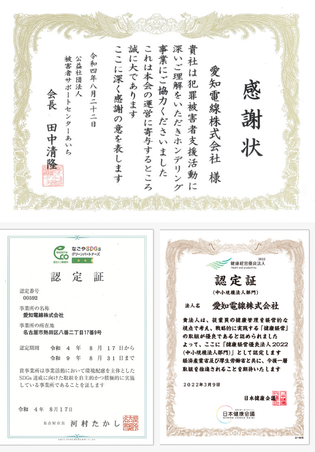 SDGsの達成に向けて取り組む企業として、愛知県から取り組みを認められる。